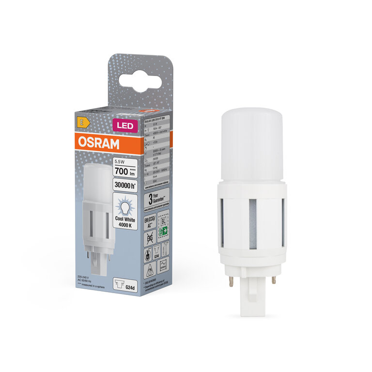 Die Osram / Ledvance Dulux D Vertikal LED punktet nicht nur durch ihre hohe Lichtqualität, sondern auch durch ihre Nachhaltigkeit. Der geringe Energieverbrauch trägt zur Reduzierung der Stromkosten bei und schont gleichzeitig die Umwelt. Die lange Lebensdauer minimiert den Wartungsaufwand und sorgt dafür, dass seltener Ersatz notwendig ist. Durch die Kombination aus Effizienz, Langlebigkeit und einfacher Handhabung ist dieses Leuchtmittel eine zukunftssichere Investition für gewerbliche und private Nutzer gleichermaßen.Vorteile: