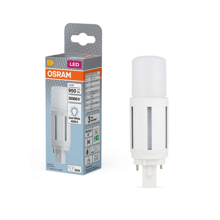 - Einfache 1:1 Austauschmöglichkeit gegen herkömmliche Kompaktleuchtstofflampen mit G24d-Sockel
