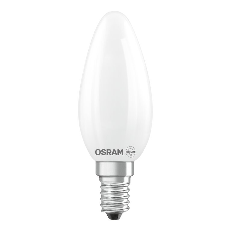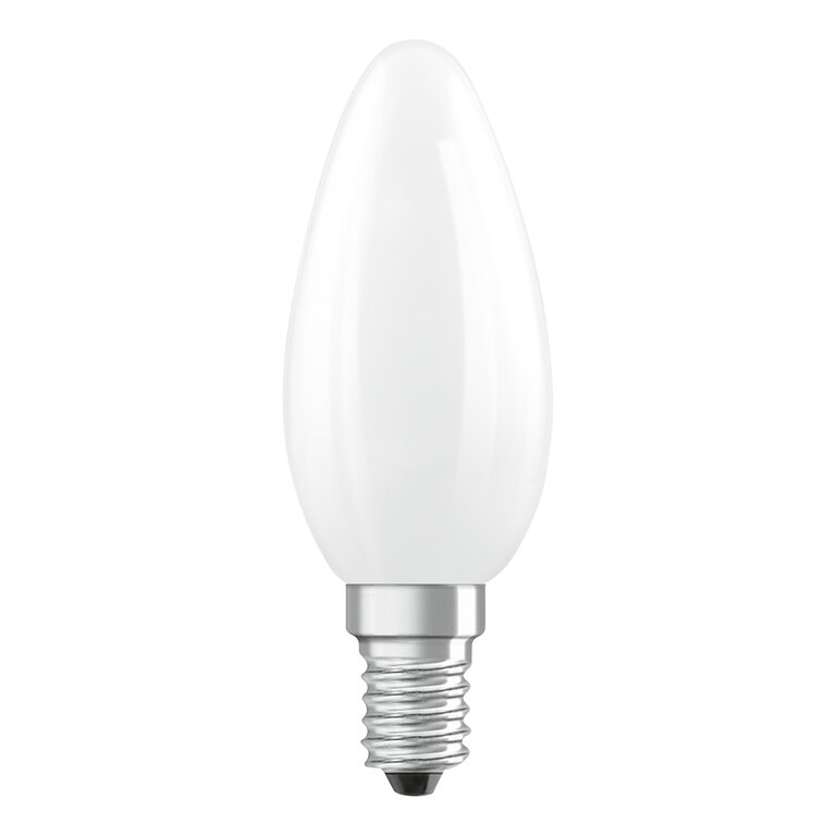 Die Osram / Ledvance Star Kerze B LED Filament im 2er Pack vereint klassisches Kerzendesign mit innovativer LED-Technologie. Mit einer Leistung von 3,4 Watt ersetzt sie herkömmliche 40-Watt-Lampen und sorgt dabei für eine angenehme, warmweiße Lichtfarbe (2700K). Das matte Glas und die filigrane Filament-Optik machen diese LED-Kerze zu einem stilvollen Hingucker in jedem Raum. Durch den E14-Sockel ist sie vielseitig einsetzbar und eignet sich besonders für Kronleuchter, Wand- und Tischleuchten, bei denen das Leuchtmittel sichtbar ist und zur Atmosphäre beiträgt.Angenehmes Licht und hohe Lichtausbeute