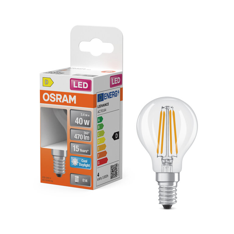 Osram / Ledvance Star Tropfen P LED Filament 3.4-40W 865 tageslichtweiß 470lm E14 klar 300° 220-240V