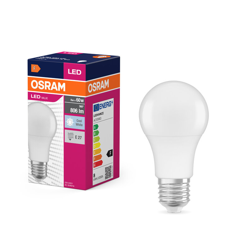 Osram / Ledvance Classic A LED Value 8-60W 840 kaltweiß 806lm E27 matt 150° 220-240V