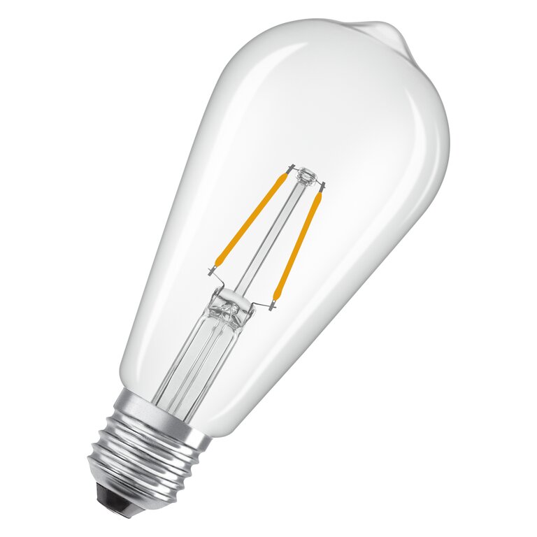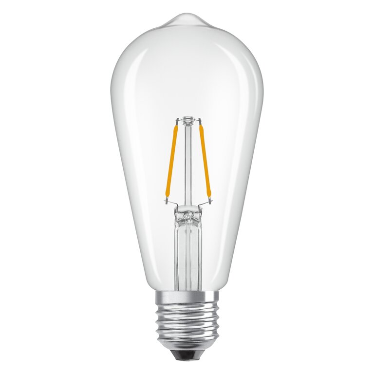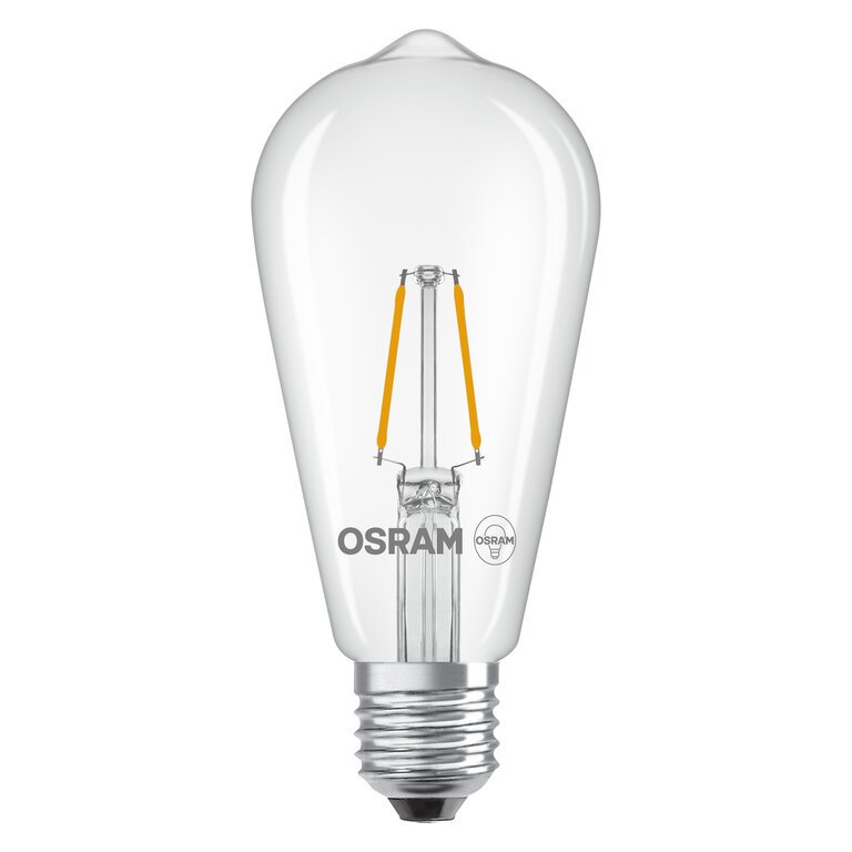 Die Osram / Ledvance Star Edison ST LED Filament 1.8-25W 827 warmweiß 250lm E27 klar 300° 220-240V vereint klassisches Aussehen mit innovativer LED-Technik. Ihr klares Glasgehäuse und das sichtbare Filament erinnern an traditionelle Edison-Leuchtmittel und sorgen für einen nostalgischen Charme in jedem Raum. Die LED ist mit einem E27-Sockel ausgestattet, was sie besonders vielseitig und kompatibel mit den meisten gängigen Leuchten macht. Mit einer Leistung von 1,8 Watt ersetzt sie herkömmliche 25-Watt-Leuchtmittel und bietet dabei eine angenehme warmweiße Lichtfarbe (2700K), die für eine gemütliche Atmosphäre sorgt.Hervorragende Lichtqualität und breite Ausstrahlung