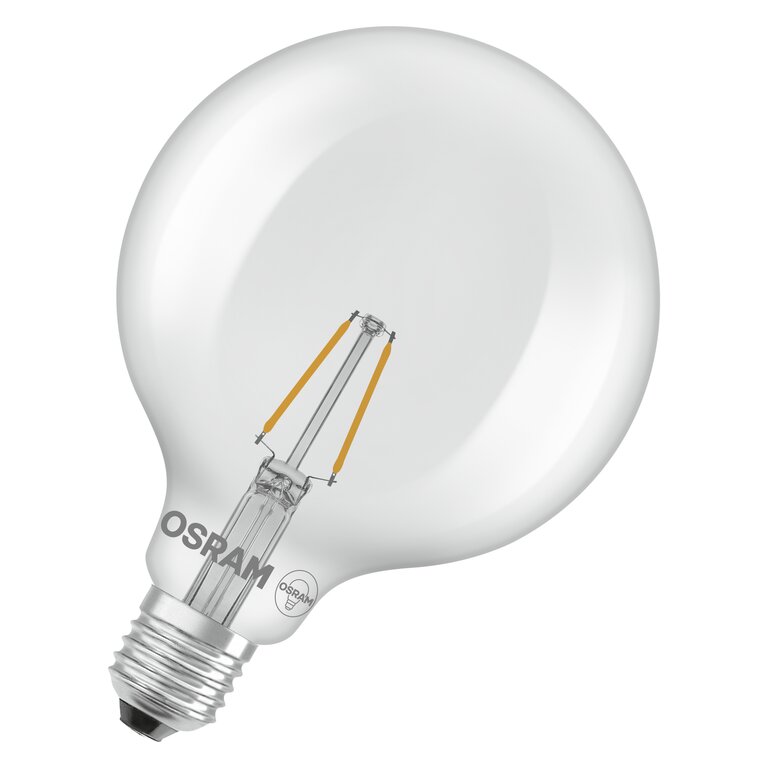 Die Osram / Ledvance Star Globe G125 LED Filament ersetzt herkömmliche 25W-Leuchtmittel und benötigt dabei lediglich 1,8W Leistung. Das bedeutet eine erhebliche Reduzierung des Stromverbrauchs, ohne auf Helligkeit oder Lichtqualität verzichten zu müssen. Die moderne LED-Filament-Technologie sorgt nicht nur für eine authentische Optik, sondern auch für eine lange Lebensdauer und hohe Zuverlässigkeit. Mit einer Betriebsspannung von 220-240V ist die LED für den direkten Anschluss an das Stromnetz geeignet und bietet somit maximale Flexibilität bei der Installation. Die Kombination aus Effizienz, Langlebigkeit und ansprechendem Design macht dieses Leuchtmittel zur idealen Wahl für anspruchsvolle Beleuchtungskonzepte.Vorteile: