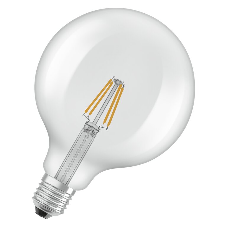 Die Osram / Ledvance Star Globe G125 LED Filament ist eine stilvolle und energieeffiziente Lichtquelle, die klassische Ästhetik mit moderner LED-Technologie verbindet. Mit ihrem auffälligen Globe-Format (G125) und dem klaren Glaskolben setzt sie dekorative Akzente in jedem Raum. Die sichtbaren Filamente erinnern an traditionelle Leuchtmittel, sorgen jedoch für eine zeitgemäße, stromsparende Beleuchtung. Dank des E27-Sockels lässt sich dieses Leuchtmittel einfach in viele gängige Fassungen einsetzen und ist somit vielseitig einsetzbar – ob in offenen Leuchten, Pendelleuchten oder als Eyecatcher in Designer-Lampen.Angenehmes, warmweißes Licht für Wohlfühlatmosphäre