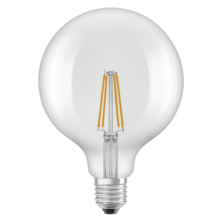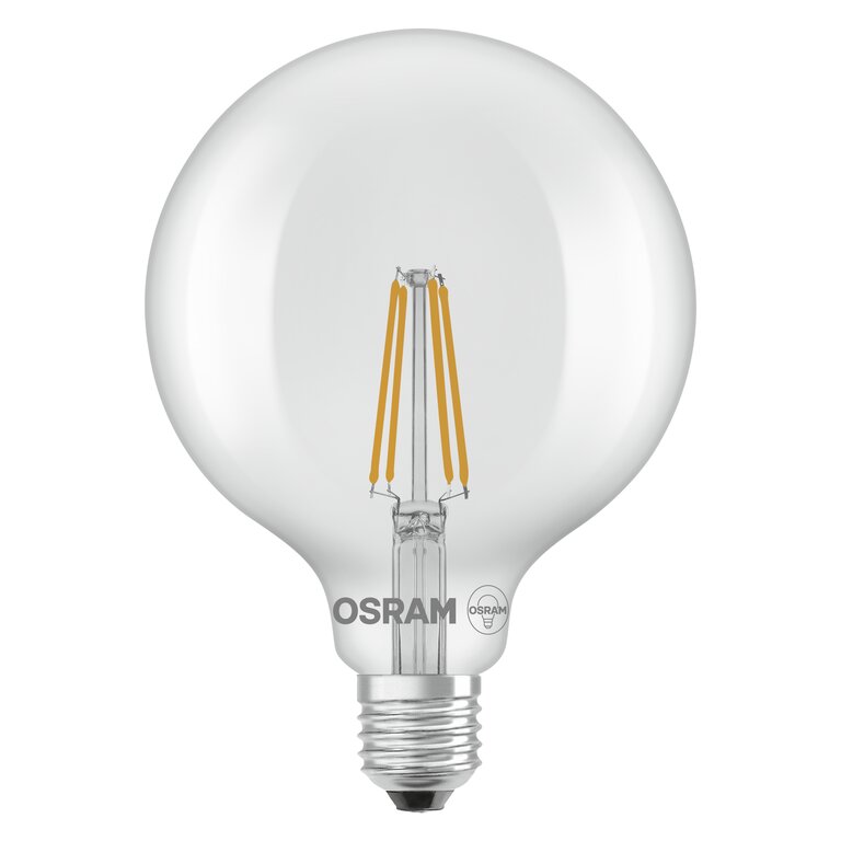 Die Osram / Ledvance Star Globe G125 LED Filament ist eine stilvolle Lichtquelle, die klassische Ästhetik mit fortschrittlicher LED-Technologie vereint. Mit ihrem großzügigen Globe-Format (G125) und dem klaren Glasdesign setzt sie dekorative Akzente in jedem Raum. Die sichtbaren Filamente erinnern an traditionelle Leuchtmittel und sorgen für eine angenehme, wohnliche Atmosphäre. Dank des E27-Sockels ist die Installation denkbar einfach und flexibel – ideal für offene Leuchten, Pendelleuchten oder dekorative Lampenfassungen.Angenehmes, warmweißes Licht für vielfältige Anwendungen