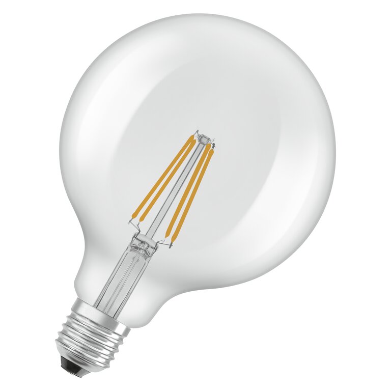 Die Osram / Ledvance Star Globe G125 LED Filament ist ein hochwertiges Leuchtmittel, das klassische Ästhetik mit moderner Technik vereint. Mit ihrem auffälligen Globe-Design und dem klaren Glaskolben setzt sie stilvolle Akzente in jedem Raum. Die sichtbaren Filamente erinnern an traditionelle Lichtquellen, während die LED-Technologie für eine effiziente und langlebige Beleuchtung sorgt. Dank des E27-Sockels ist die Installation denkbar einfach und kompatibel mit einer Vielzahl von Leuchten. Die Globe G125 eignet sich hervorragend für offene Leuchten, Pendelleuchten oder dekorative Lampen, bei denen das Leuchtmittel selbst zum Blickfang wird.Leistungsstarke und angenehme Lichtqualität