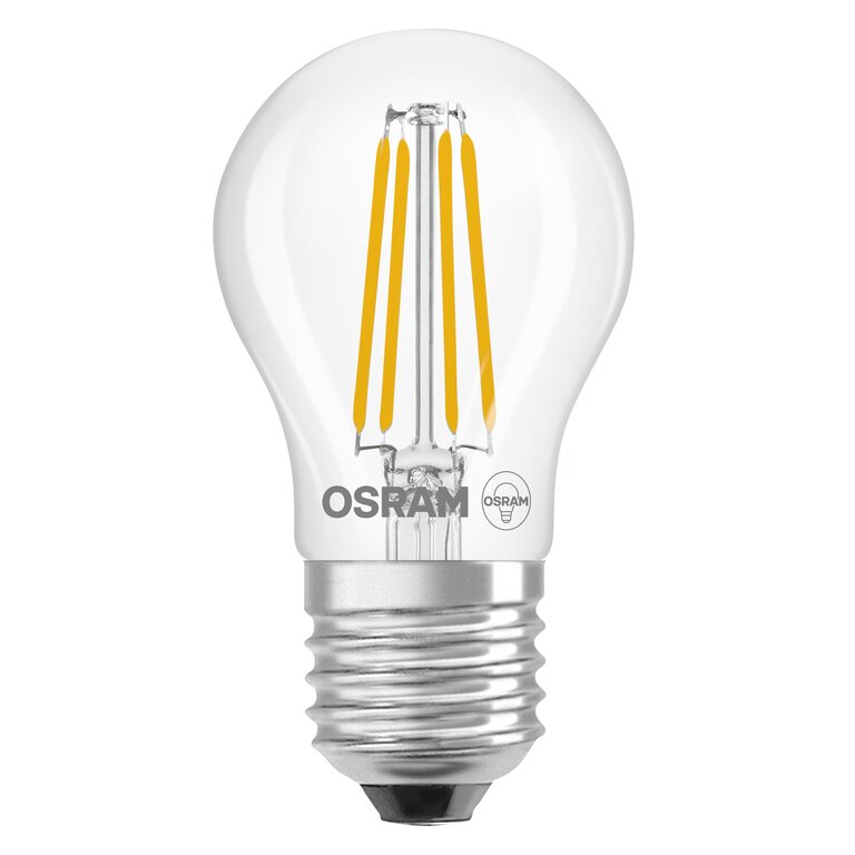Die Osram / Ledvance Star Tropfen P LED Filament überzeugt durch ihre hohe Energieeffizienz und eine lange Lebensdauer. Mit einer Leistungsaufnahme von nur 3,4 Watt ersetzt sie eine herkömmliche 40W-Lampe und hilft so, den Stromverbrauch deutlich zu senken. Die Betriebsspannung von 220-240V ermöglicht den direkten Anschluss an das Stromnetz, ohne dass zusätzliche Vorschaltgeräte benötigt werden. Dank der robusten Bauweise und der modernen LED-Technik profitieren Sie von einer langen Nutzungsdauer und seltenerem Lampenwechsel.Vorteile:
