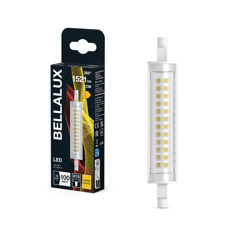 Die Bellalux / Ledvance Slim Line LED R7s ist eine innovative Lichtquelle, die klassische Halogenstäbe im Format 118mm ersetzt. Mit einer beeindruckenden Lichtleistung von 1521 Lumen sorgt sie für eine helle und gleichmäßige Ausleuchtung in Wohnräumen, Büros oder gewerblichen Bereichen. Die warmweiße Lichtfarbe (827) schafft eine angenehme Atmosphäre und eignet sich ideal für den Einsatz in Stehleuchten, Wandflutern oder Außenstrahlern. Das klare Design und der Abstrahlwinkel von 300° ermöglichen eine nahezu rundum strahlende Lichtverteilung, wodurch auch größere Flächen optimal ausgeleuchtet werden.Effiziente und langlebige Beleuchtungslösung